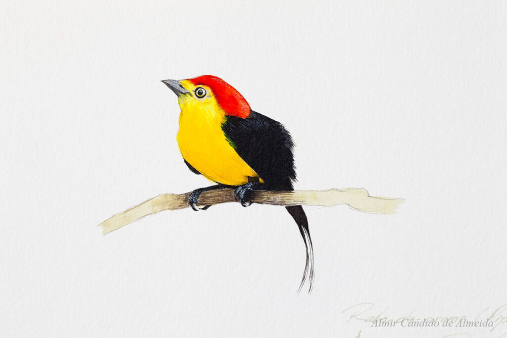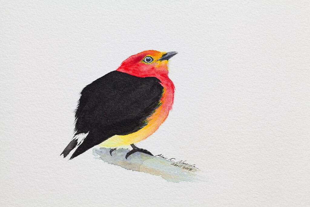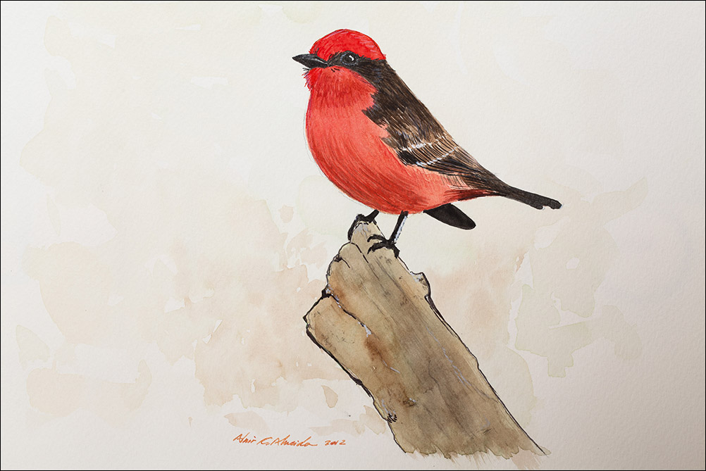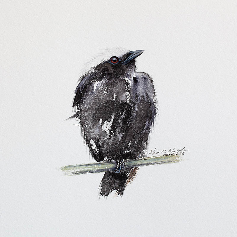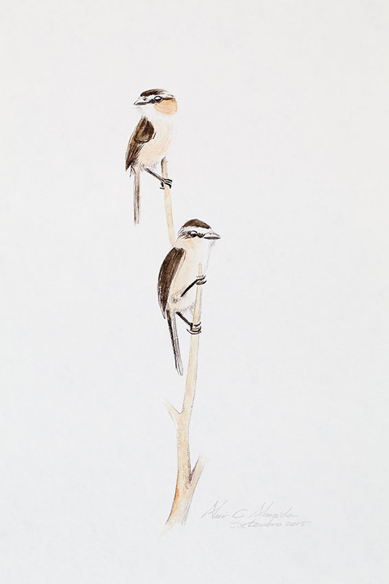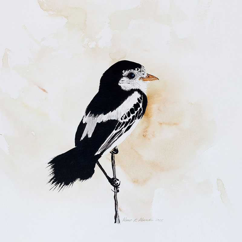Aquarela 24 x 32 cm - Balança-rabo-de-máscara (Polioptila dumicola) - Esta simpática avezinha é facilmente encontrada em várias regiões do Brasil.